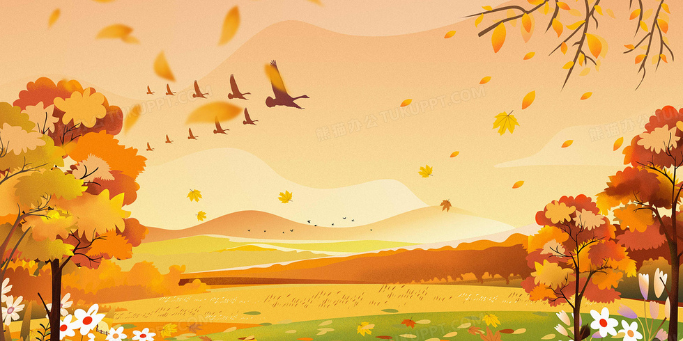 本作品内容为黄色扁平风秋日田野景色背景, 格式为 psd, 大小71 MB, 图片尺寸为4724 x 2362, 作品中背景图片无需修改, 源文件无水印,可以直接使用, 欢迎使用熊猫办公。 如认为平台内容涉嫌侵权,可通过邮件:tousu@tukuppt.com提出书面通知,我们将及时处理。