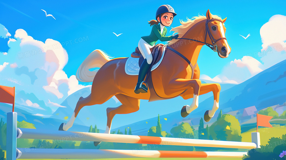 本作品内容为赛场马术比赛的女孩子插画, 格式为 jpg, 大小3 MB, 图片尺寸为2912 x 1632, 源文件无水印, 欢迎使用熊猫办公。 如认为平台内容涉嫌侵权,可通过邮件:tousu@tukuppt.com提出书面通知,我们将及时处理。