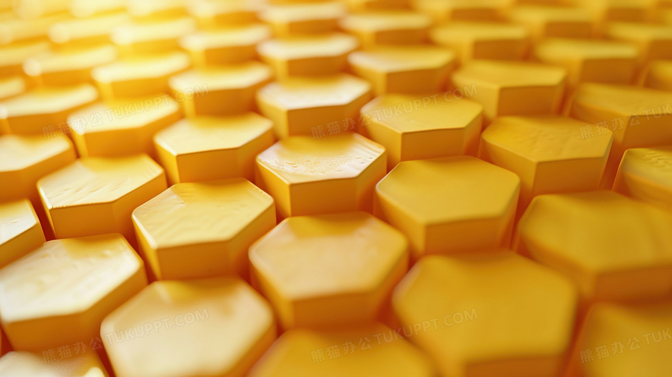 本作品内容为金色六边形网格纹理背景, 格式为 jpg, 大小2 MB, 图片尺寸为2912 x 1632, 作品中背景图片无需修改, 源文件无水印,可以直接使用, 欢迎使用熊猫办公。 如认为平台内容涉嫌侵权,可通过邮件:tousu@tukuppt.com提出书面通知,我们将及时处理。
