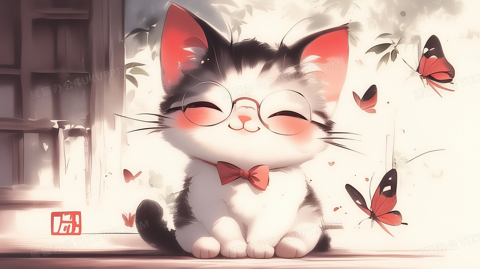本作品内容为中国水墨风格的毛茸茸猫咪玩蝴蝶创意插画, 格式为 jpg, 大小6 MB, 图片尺寸为2912 x 1632, 源文件无水印, 欢迎使用熊猫办公。 如认为平台内容涉嫌侵权,可通过邮件:tousu@tukuppt.com提出书面通知,我们将及时处理。