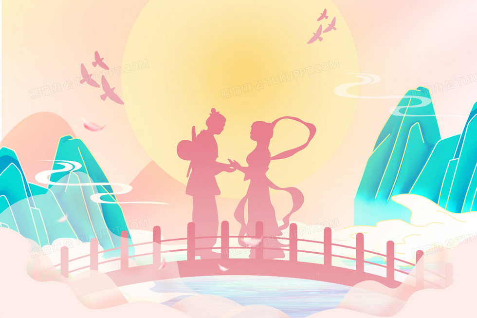 本作品内容为七夕情人节牛郎织女剪影插画, 格式为 psd, 大小35 MB, 请使用软件PhotoShop(CS6)打开, 源文件无水印, 欢迎使用熊猫办公。 如认为平台内容涉嫌侵权,可通过邮件:tousu@tukuppt.com提出书面通知,我们将及时处理。