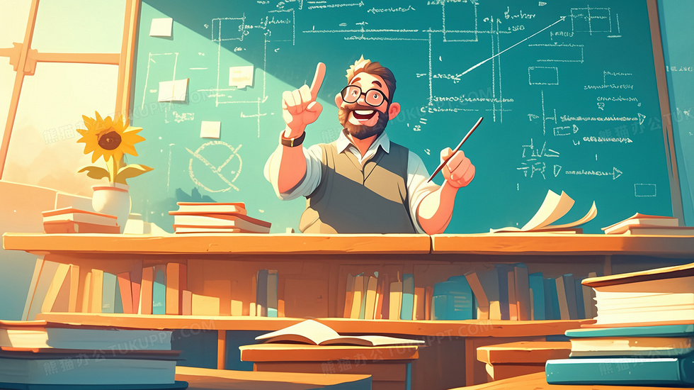 本作品内容为教师节男老师在黑板前讲课插画, 格式为 jpg, 大小3 MB, 图片尺寸为2912 x 1632, 源文件无水印, 欢迎使用熊猫办公。 如认为平台内容涉嫌侵权,可通过邮件:tousu@tukuppt.com提出书面通知,我们将及时处理。