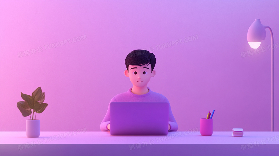 本作品内容为紫色打工人商务办公招聘简约背景, 格式为 jpg, 大小3 MB, 图片尺寸为2912 x 1632, 作品中背景图片无需修改, 源文件无水印,可以直接使用, 欢迎使用熊猫办公。 如认为平台内容涉嫌侵权,可通过邮件:tousu@tukuppt.com提出书面通知,我们将及时处理。