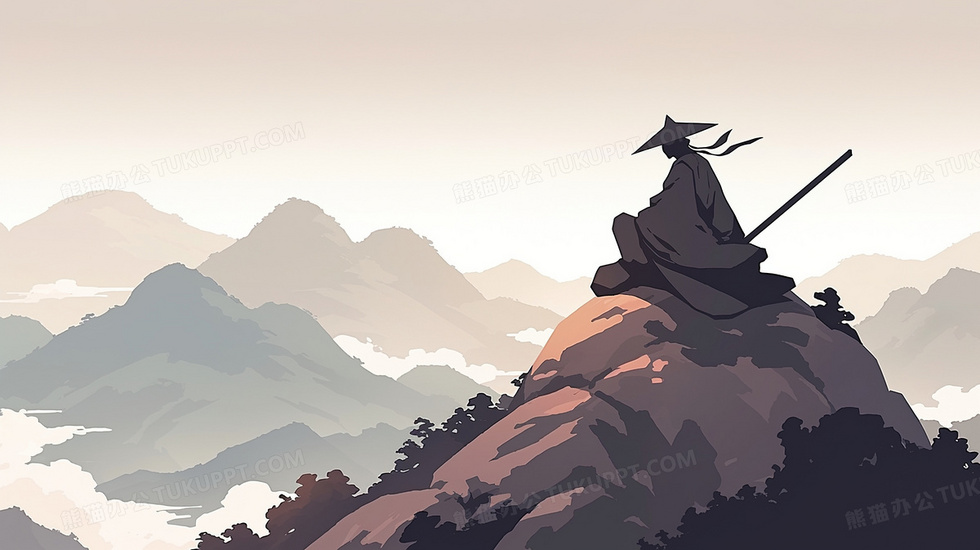 本作品内容为水墨山顶手拿剑的黑色侠客背景, 格式为 jpg, 大小2 MB, 图片尺寸为2912 x 1632, 作品中背景图片无需修改, 源文件无水印,可以直接使用, 欢迎使用熊猫办公。 如认为平台内容涉嫌侵权,可通过邮件:tousu@tukuppt.com提出书面通知,我们将及时处理。