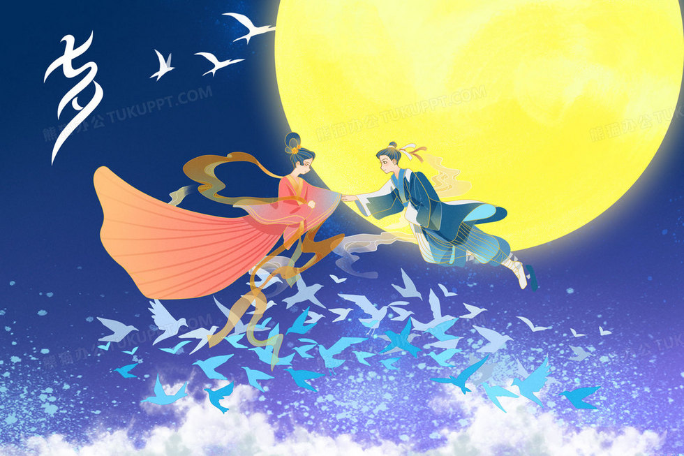 本作品内容为七夕节牛郎织女月下搭鹊桥相会插画, 格式为 psd, 大小82 MB, 请使用软件PhotoShop(CC)打开, 源文件无水印, 欢迎使用熊猫办公。 如认为平台内容涉嫌侵权,可通过邮件:tousu@tukuppt.com提出书面通知,我们将及时处理。