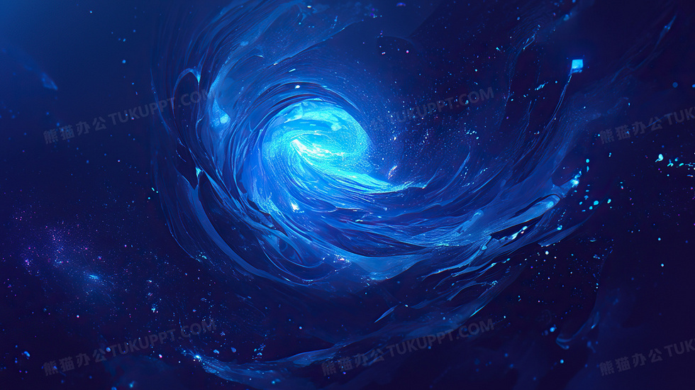本作品内容为蓝色宇宙漩涡背景, 格式为 jpg, 大小4 MB, 图片尺寸为2912 x 1632, 作品中背景图片无需修改, 源文件无水印,可以直接使用, 欢迎使用熊猫办公。 如认为平台内容涉嫌侵权,可通过邮件:tousu@tukuppt.com提出书面通知,我们将及时处理。