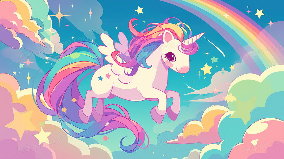 本作品内容为梦幻彩虹独角兽插画, 格式为 jpg, 大小3 MB, 图片尺寸为2912 x 1632, 源文件无水印, 欢迎使用熊猫办公。 如认为平台内容涉嫌侵权,可通过邮件:tousu@tukuppt.com提出书面通知,我们将及时处理。