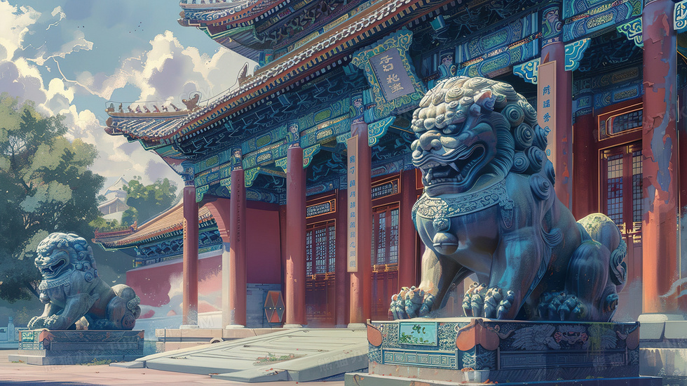 本作品内容为中国古建筑石狮子插画, 格式为 jpg, 大小4 MB, 图片尺寸为2912 x 1632, 源文件无水印, 欢迎使用熊猫办公。 如认为平台内容涉嫌侵权,可通过邮件:tousu@tukuppt.com提出书面通知,我们将及时处理。
