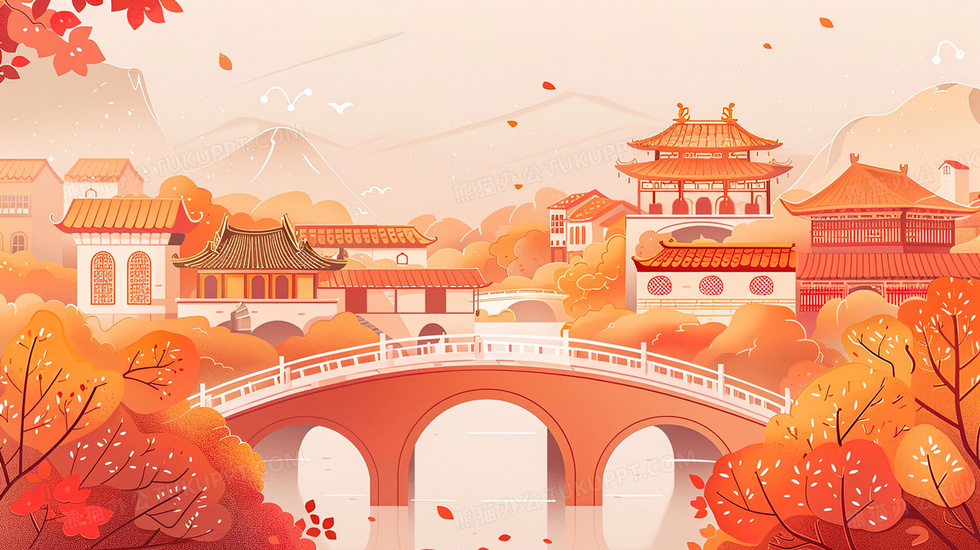 本作品内容为橘黄色秋季村落古镇拱桥房屋风景插画, 格式为 jpg, 大小3 MB, 图片尺寸为2912 x 1632, 源文件无水印, 欢迎使用熊猫办公。 如认为平台内容涉嫌侵权,可通过邮件:tousu@tukuppt.com提出书面通知,我们将及时处理。