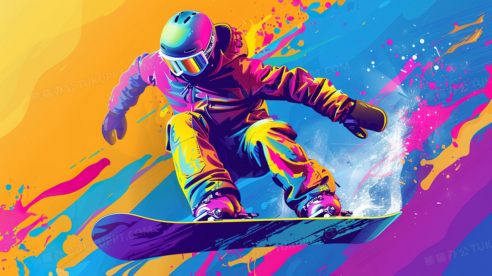 本作品内容为滑雪板运动员动态姿势彩色背景, 格式为 jpg, 大小3 MB, 图片尺寸为2912 x 1632, 作品中背景图片无需修改, 源文件无水印,可以直接使用, 欢迎使用熊猫办公。 如认为平台内容涉嫌侵权,可通过邮件:tousu@tukuppt.com提出书面通知,我们将及时处理。
