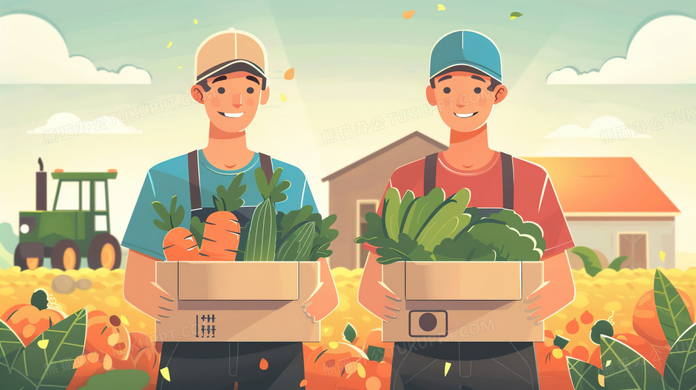 本作品内容为农夫抱着蔬菜的插画, 格式为 jpg, 大小4 MB, 图片尺寸为2912 x 1632, 源文件无水印, 欢迎使用熊猫办公。 如认为平台内容涉嫌侵权,可通过邮件:tousu@tukuppt.com提出书面通知,我们将及时处理。