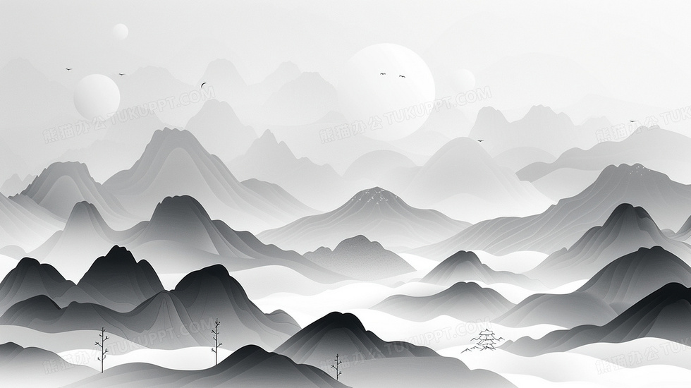 本作品内容为水墨山水中国风简约背景, 格式为 jpg, 大小3 MB, 图片尺寸为2912 x 1632, 作品中背景图片无需修改, 源文件无水印,可以直接使用, 欢迎使用熊猫办公。 如认为平台内容涉嫌侵权,可通过邮件:tousu@tukuppt.com提出书面通知,我们将及时处理。