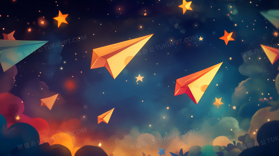 本作品内容为彩色卡通纸飞机飞翔背景, 格式为 jpg, 大小2 MB, 图片尺寸为2912 x 1632, 作品中背景图片无需修改, 源文件无水印,可以直接使用, 欢迎使用熊猫办公。 如认为平台内容涉嫌侵权,可通过邮件:tousu@tukuppt.com提出书面通知,我们将及时处理。