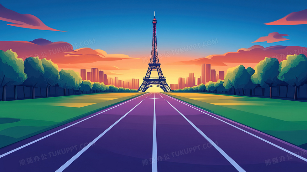 本作品内容为浪漫唯美风法国巴黎法兰西体育场跑道的插画, 格式为 jpg, 大小2 MB, 图片尺寸为2912 x 1632, 源文件无水印, 欢迎使用熊猫办公。 如认为平台内容涉嫌侵权,可通过邮件:tousu@tukuppt.com提出书面通知,我们将及时处理。