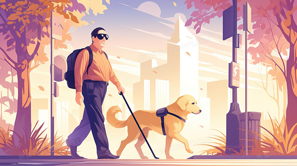 本作品内容为路上的导盲犬与男性盲人插画, 格式为 jpg, 大小2 MB, 图片尺寸为2912 x 1632, 源文件无水印, 欢迎使用熊猫办公。 如认为平台内容涉嫌侵权,可通过邮件:tousu@tukuppt.com提出书面通知,我们将及时处理。