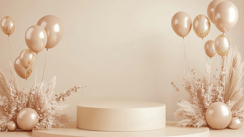 本作品内容为唯美纯色展台气球背景, 格式为 jpg, 大小2 MB, 图片尺寸为2912 x 1632, 作品中背景图片无需修改, 源文件无水印,可以直接使用, 欢迎使用熊猫办公。 如认为平台内容涉嫌侵权,可通过邮件:tousu@tukuppt.com提出书面通知,我们将及时处理。