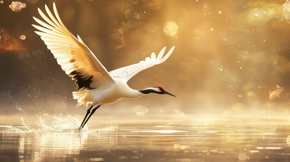 本作品内容为秋天丹顶鹤水上飞翔特写插画, 格式为 jpg, 大小3 MB, 图片尺寸为2912 x 1632, 源文件无水印, 欢迎使用熊猫办公。 如认为平台内容涉嫌侵权,可通过邮件:tousu@tukuppt.com提出书面通知,我们将及时处理。