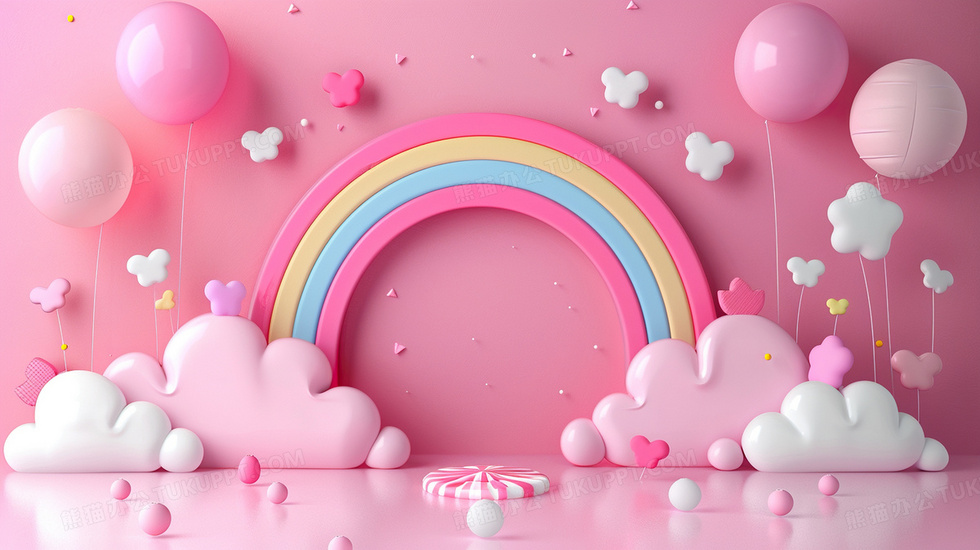 本作品内容为粉色气球彩虹展台合成背景, 格式为 jpg, 大小3 MB, 图片尺寸为2912 x 1632, 作品中背景图片无需修改, 源文件无水印,可以直接使用, 欢迎使用熊猫办公。 如认为平台内容涉嫌侵权,可通过邮件:tousu@tukuppt.com提出书面通知,我们将及时处理。