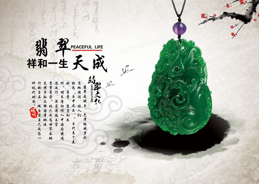 本作品内容为中国风翠绿翡翠珠宝宣传海报, 格式为 psd, 图片尺寸为3579 x 2551, 作品中背景图片无需修改, 源文件无水印,可以直接使用, 欢迎使用熊猫办公。 如认为平台内容涉嫌侵权,可通过邮件:tousu@tukuppt.com提出书面通知,我们将及时处理。