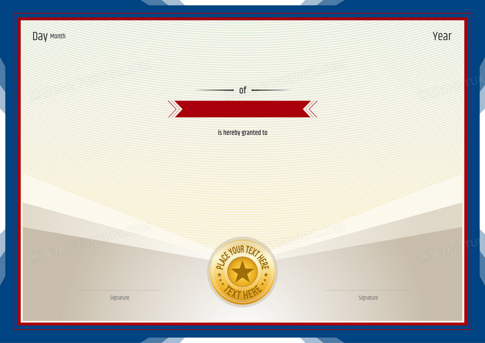 本作品内容为证书证件, 格式为 ai, 图片尺寸为2125 x 1503, 作品中背景图片无需修改, 源文件无水印,可以直接使用, 欢迎使用熊猫办公。 如认为平台内容涉嫌侵权,可通过邮件:tousu@tukuppt.com提出书面通知,我们将及时处理。