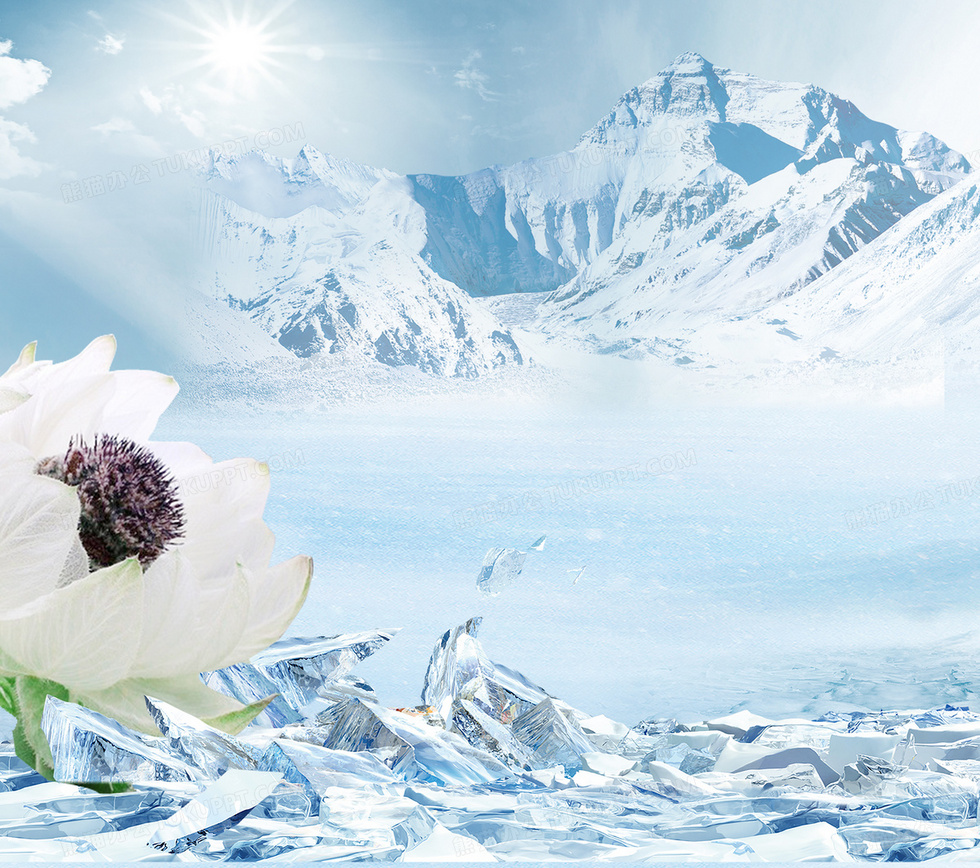 本作品内容为冰山上的雪莲花, 格式为 psd, 图片尺寸为2667 x 2362, 作品中背景图片无需修改, 源文件无水印,可以直接使用, 欢迎使用熊猫办公。 如认为平台内容涉嫌侵权,可通过邮件:tousu@tukuppt.com提出书面通知,我们将及时处理。