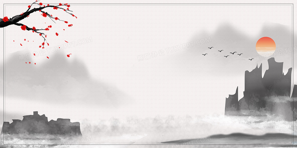 本作品内容为水墨山峰意境中国风梅花大气背景, 格式为 psd, 大小131 MB, 图片尺寸为9449 x 4724, 作品中背景图片无需修改, 源文件无水印,可以直接使用, 欢迎使用熊猫办公。 如认为平台内容涉嫌侵权,可通过邮件:tousu@tukuppt.com提出书面通知,我们将及时处理。