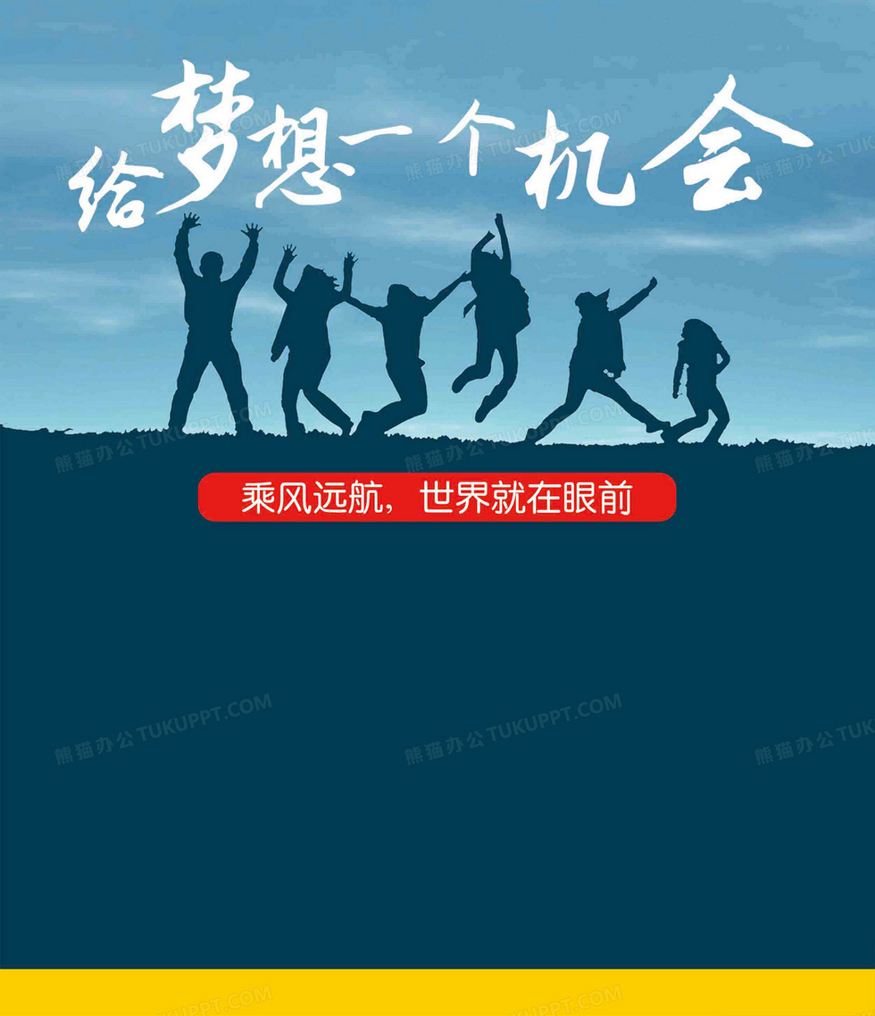 本作品内容为招聘人才剪影给梦想一个机会蓝色海报背景, 格式为 psd, 图片尺寸为2500 x 2900, 作品中背景图片无需修改, 源文件无水印,可以直接使用, 欢迎使用熊猫办公。 如认为平台内容涉嫌侵权,可通过邮件:tousu@tukuppt.com提出书面通知,我们将及时处理。