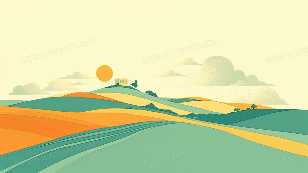 本作品内容为卡通山水日出景色创意背景, 格式为 jpg, 大小2 MB, 图片尺寸为2912 x 1632, 作品中背景图片无需修改, 源文件无水印,可以直接使用, 欢迎使用熊猫办公。 如认为平台内容涉嫌侵权,可通过邮件:tousu@tukuppt.com提出书面通知,我们将及时处理。
