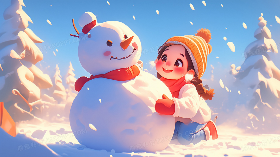 本作品内容为冬天女孩堆雪人场景插画, 格式为 jpg, 大小6 MB, 图片尺寸为2912 x 1632, 源文件无水印, 欢迎使用熊猫办公。 如认为平台内容涉嫌侵权,可通过邮件:tousu@tukuppt.com提出书面通知,我们将及时处理。