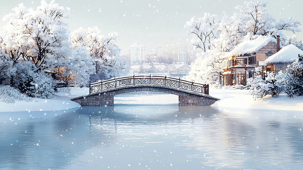 本作品内容为冬季飘雪园林拱桥古建筑景色插画, 格式为 jpg, 大小4 MB, 图片尺寸为2912 x 1632, 源文件无水印, 欢迎使用熊猫办公。 如认为平台内容涉嫌侵权,可通过邮件:tousu@tukuppt.com提出书面通知,我们将及时处理。