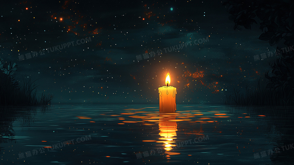 本作品内容为湖面上燃烧着的蜡烛卡通背景, 格式为 jpg, 大小3 MB, 图片尺寸为2912 x 1632, 作品中背景图片无需修改, 源文件无水印,可以直接使用, 欢迎使用熊猫办公。 如认为平台内容涉嫌侵权,可通过邮件:tousu@tukuppt.com提出书面通知,我们将及时处理。