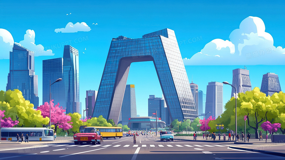 本作品内容为北京电视台地标插画, 格式为 jpg, 大小4 MB, 图片尺寸为2912 x 1632, 源文件无水印, 欢迎使用熊猫办公。 如认为平台内容涉嫌侵权,可通过邮件:tousu@tukuppt.com提出书面通知,我们将及时处理。