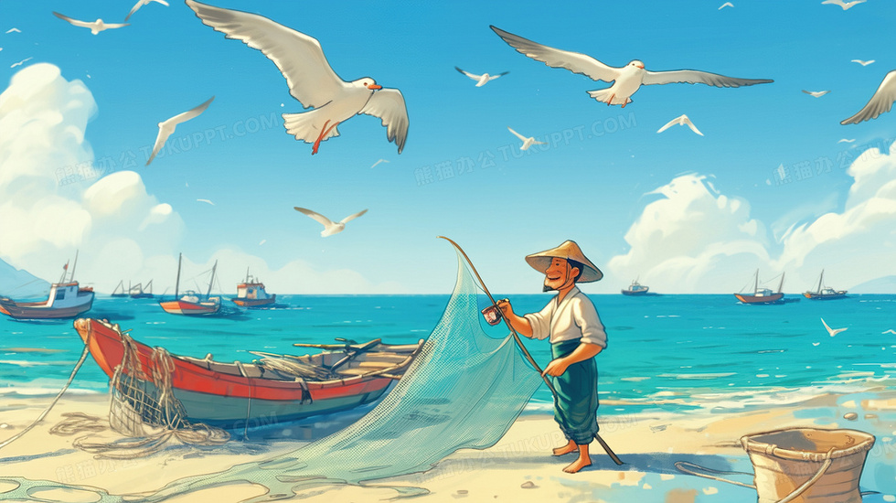 本作品内容为出海撒网捕鱼的渔民伯伯插画, 格式为 jpg, 大小3 MB, 图片尺寸为2912 x 1632, 源文件无水印, 欢迎使用熊猫办公。 如认为平台内容涉嫌侵权,可通过邮件:tousu@tukuppt.com提出书面通知,我们将及时处理。