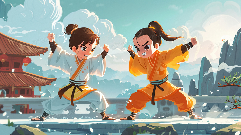 卡通中国风山水武功武侠插画