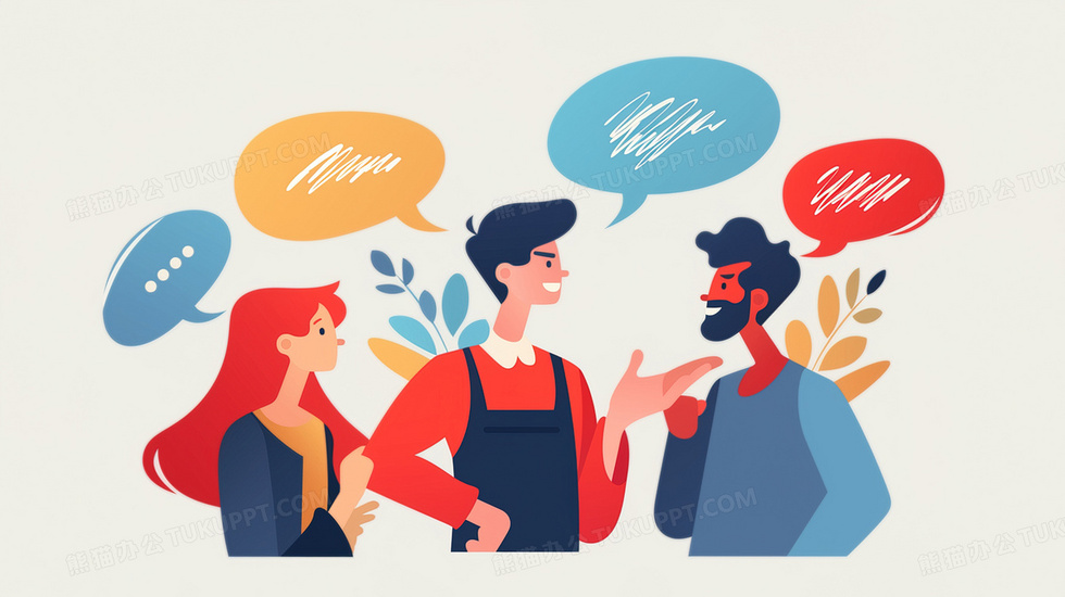 本作品内容为扁平化语音面对面聊天说话的人物插画, 格式为 jpg, 大小1 MB, 图片尺寸为2912 x 1632, 源文件无水印, 欢迎使用熊猫办公。 如认为平台内容涉嫌侵权,可通过邮件:tousu@tukuppt.com提出书面通知,我们将及时处理。