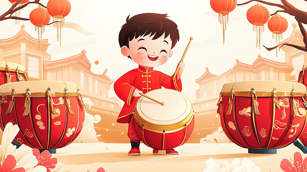本作品内容为春节敲打圆鼓的可爱卡通小男孩插画, 格式为 jpg, 大小3 MB, 图片尺寸为2912 x 1632, 源文件无水印, 欢迎使用熊猫办公。 如认为平台内容涉嫌侵权,可通过邮件:tousu@tukuppt.com提出书面通知,我们将及时处理。
