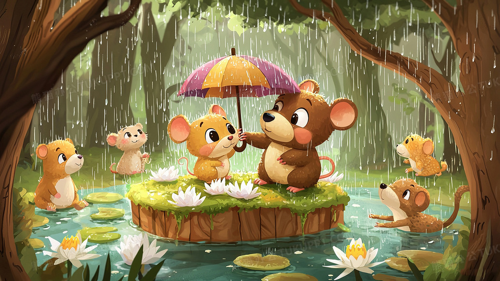 本作品内容为下雨天树下躲雨的动物老鼠插画, 格式为 jpg, 大小3 MB, 图片尺寸为2912 x 1632, 源文件无水印, 欢迎使用熊猫办公。 如认为平台内容涉嫌侵权,可通过邮件:tousu@tukuppt.com提出书面通知,我们将及时处理。