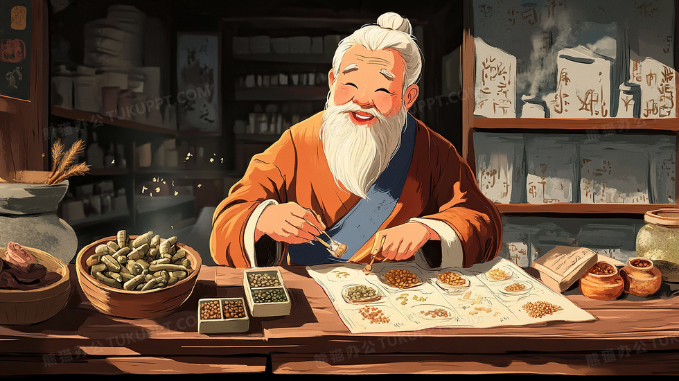 本作品内容为古代人物老中医药铺抓药插画, 格式为 jpg, 大小4 MB, 图片尺寸为2912 x 1632, 源文件无水印, 欢迎使用熊猫办公。 如认为平台内容涉嫌侵权,可通过邮件:tousu@tukuppt.com提出书面通知,我们将及时处理。