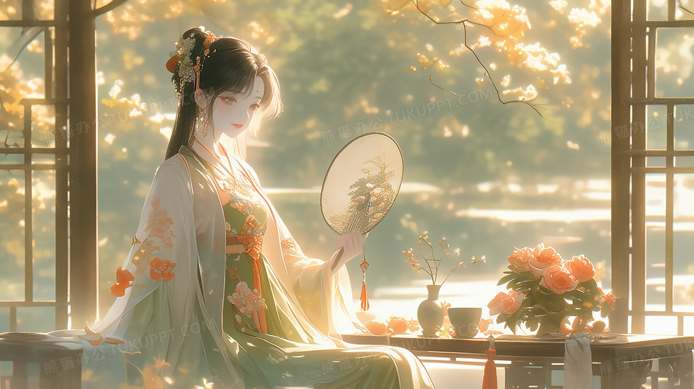 本作品内容为中国风古风美女绿色汉服服饰人物插画, 格式为 jpg, 大小3 MB, 图片尺寸为2912 x 1632, 源文件无水印, 欢迎使用熊猫办公。 如认为平台内容涉嫌侵权,可通过邮件:tousu@tukuppt.com提出书面通知,我们将及时处理。