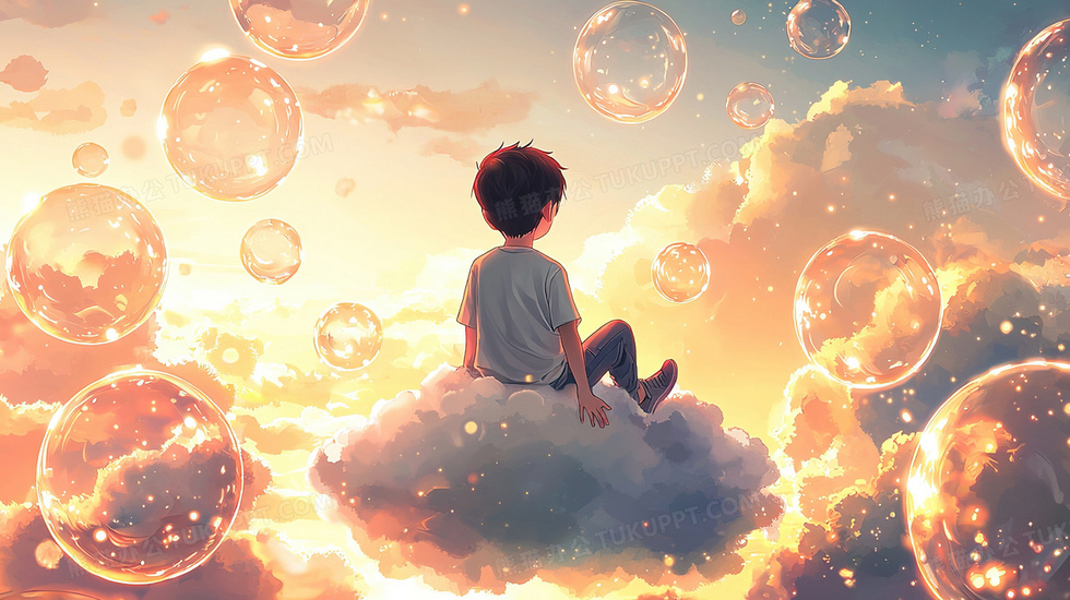 本作品内容为创意治愈系卡通坐在云中的男孩周围梦幻泡泡插画, 格式为 jpg, 大小3 MB, 图片尺寸为2912 x 1632, 源文件无水印, 欢迎使用熊猫办公。 如认为平台内容涉嫌侵权,可通过邮件:tousu@tukuppt.com提出书面通知,我们将及时处理。