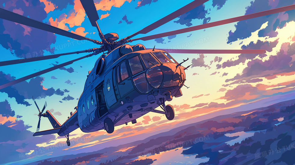 本作品内容为空中飞行的直升机插画, 格式为 jpg, 大小3 MB, 图片尺寸为2912 x 1632, 源文件无水印, 欢迎使用熊猫办公。 如认为平台内容涉嫌侵权,可通过邮件:tousu@tukuppt.com提出书面通知,我们将及时处理。