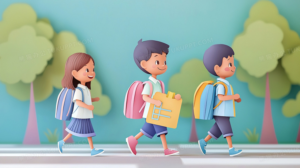 本作品内容为背着书包走路上学的小学生插画, 格式为 jpg, 大小3 MB, 图片尺寸为2912 x 1632, 源文件无水印, 欢迎使用熊猫办公。 如认为平台内容涉嫌侵权,可通过邮件:tousu@tukuppt.com提出书面通知,我们将及时处理。