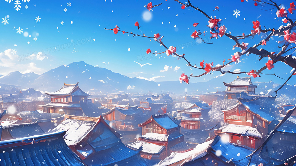 本作品内容为冬季被雪覆盖屋檐的古城建筑风景插画, 格式为 jpg, 大小3 MB, 图片尺寸为2912 x 1632, 源文件无水印, 欢迎使用熊猫办公。 如认为平台内容涉嫌侵权,可通过邮件:tousu@tukuppt.com提出书面通知,我们将及时处理。