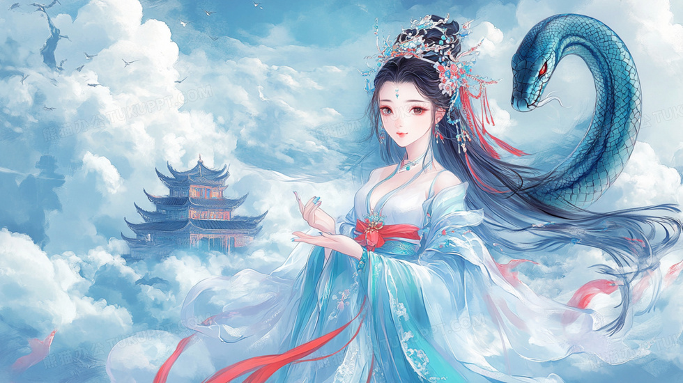 本作品内容为古装汉服女子美女与蛇年生肖蛇插画, 格式为 jpg, 大小3 MB, 图片尺寸为1456 x 816, 源文件无水印, 欢迎使用熊猫办公。 如认为平台内容涉嫌侵权,可通过邮件:tousu@tukuppt.com提出书面通知,我们将及时处理。