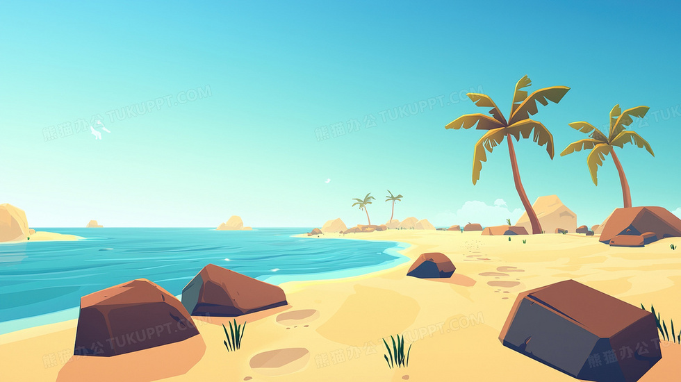 本作品内容为卡通海边沙滩椰子树背景, 格式为 jpg, 大小2 MB, 图片尺寸为2912 x 1632, 作品中背景图片无需修改, 源文件无水印,可以直接使用, 欢迎使用熊猫办公。 如认为平台内容涉嫌侵权,可通过邮件:tousu@tukuppt.com提出书面通知,我们将及时处理。