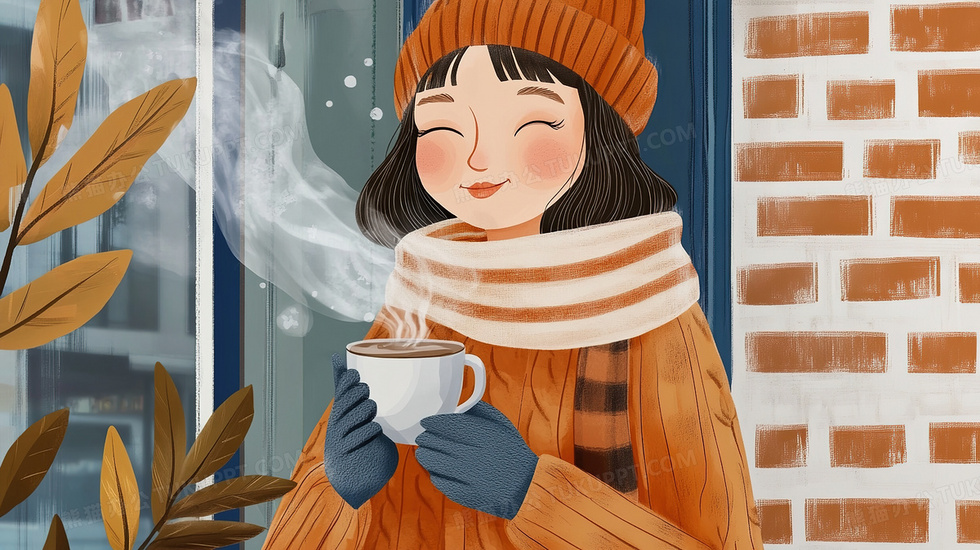 本作品内容为冬季雪天穿着厚衣服捧着一杯热咖啡的女孩插画, 格式为 jpg, 大小4 MB, 图片尺寸为2912 x 1632, 源文件无水印, 欢迎使用熊猫办公。 如认为平台内容涉嫌侵权,可通过邮件:tousu@tukuppt.com提出书面通知,我们将及时处理。