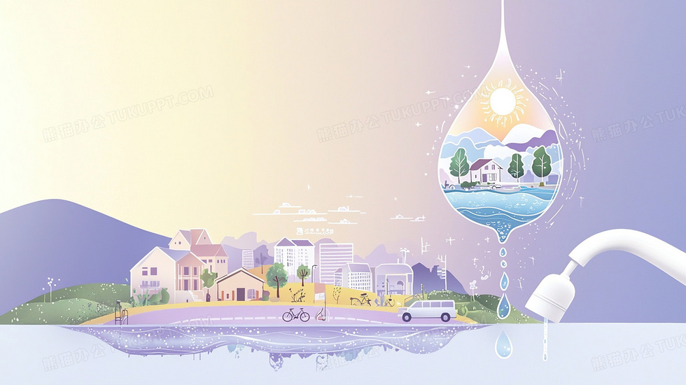 本作品内容为节约用水水资源保护卡通背景, 格式为 jpg, 大小2 MB, 图片尺寸为2912 x 1632, 作品中背景图片无需修改, 源文件无水印,可以直接使用, 欢迎使用熊猫办公。 如认为平台内容涉嫌侵权,可通过邮件:tousu@tukuppt.com提出书面通知,我们将及时处理。