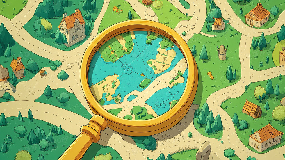本作品内容为地图与放大镜插画, 格式为 jpg, 大小4 MB, 图片尺寸为2912 x 1632, 源文件无水印, 欢迎使用熊猫办公。 如认为平台内容涉嫌侵权,可通过邮件:tousu@tukuppt.com提出书面通知,我们将及时处理。