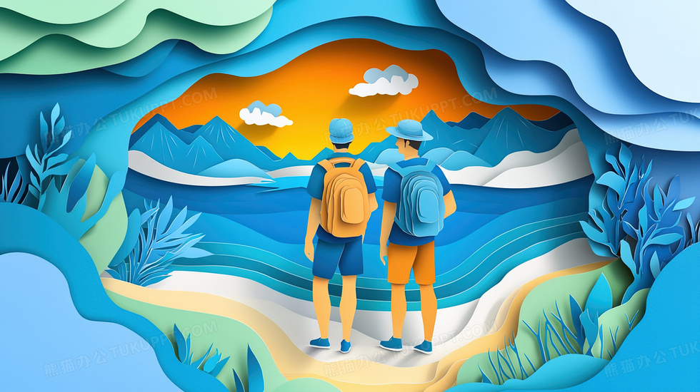 本作品内容为剪纸风背着双肩包登山男孩背影插画, 格式为 jpg, 大小3 MB, 图片尺寸为2912 x 1632, 源文件无水印, 欢迎使用熊猫办公。 如认为平台内容涉嫌侵权,可通过邮件:tousu@tukuppt.com提出书面通知,我们将及时处理。