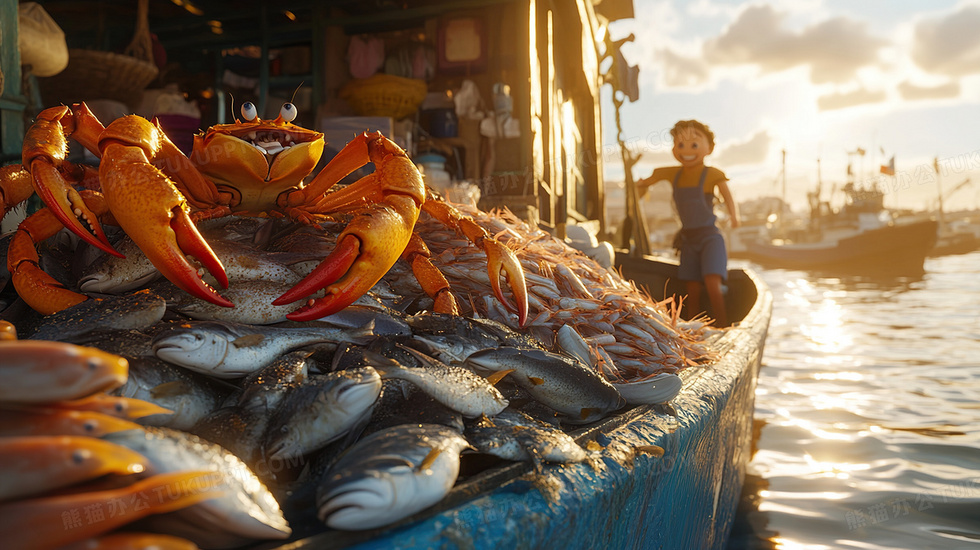 本作品内容为渔业丰收场景插画, 格式为 jpg, 大小3 MB, 图片尺寸为2912 x 1632, 源文件无水印, 欢迎使用熊猫办公。 如认为平台内容涉嫌侵权,可通过邮件:tousu@tukuppt.com提出书面通知,我们将及时处理。
